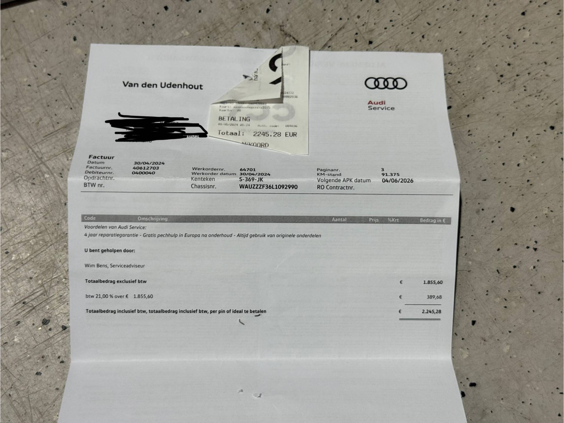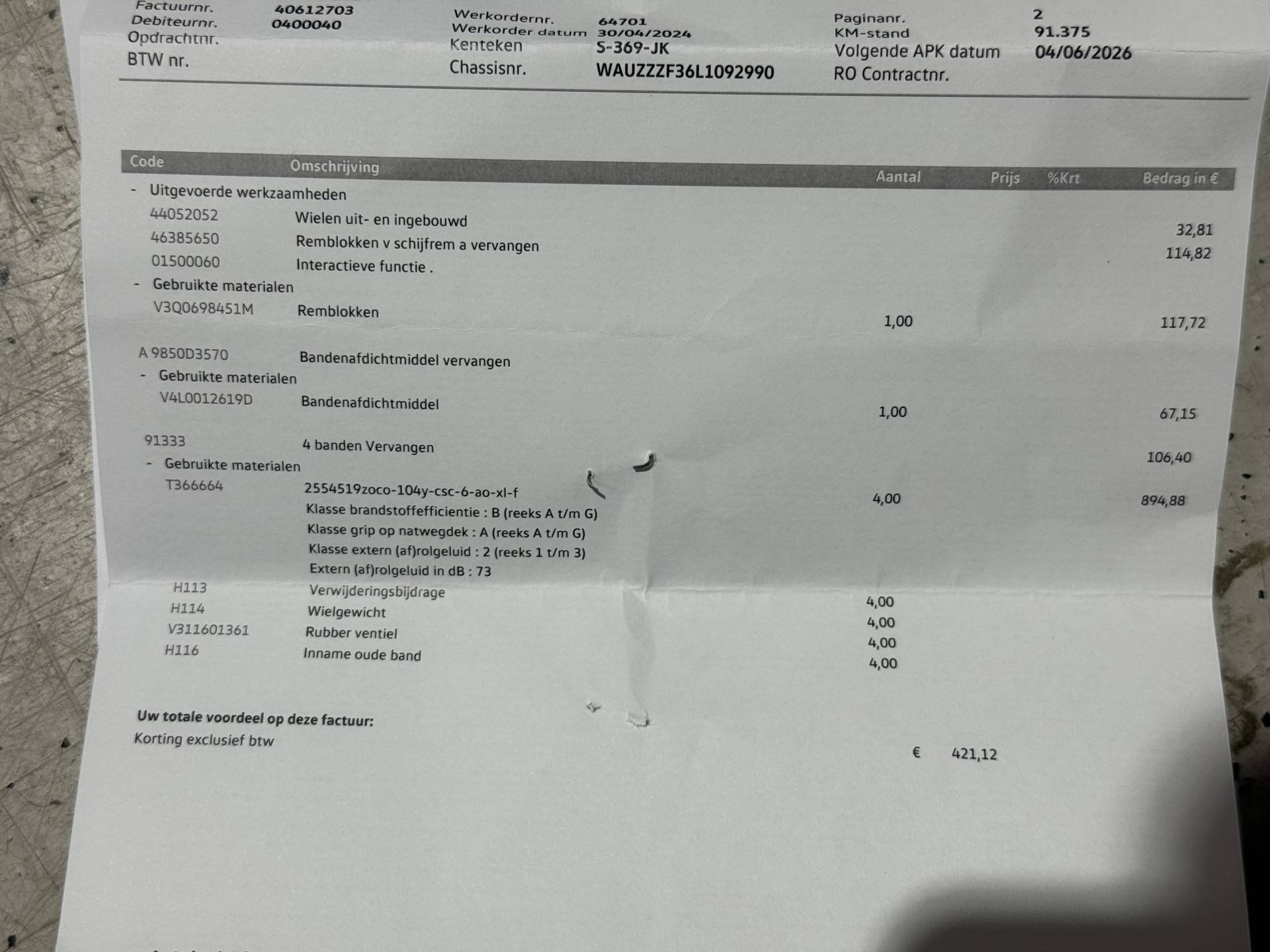 APK bij aflevering